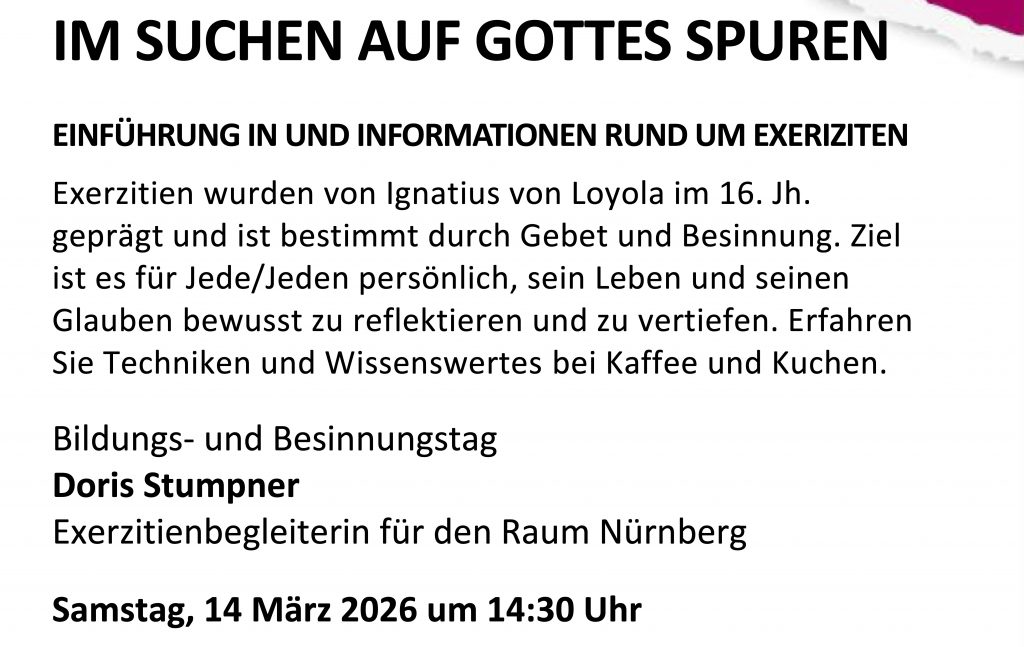 Besinnungsnachmittag in der Fastenzeit (Nicht wie im der aktuellen Gottesdienstordnung am 28. Febr. , sondern wie auf dem Eingangsbild richtiger Weise steht, am 14. März) Exerzitien wurden von Ignatius von […]