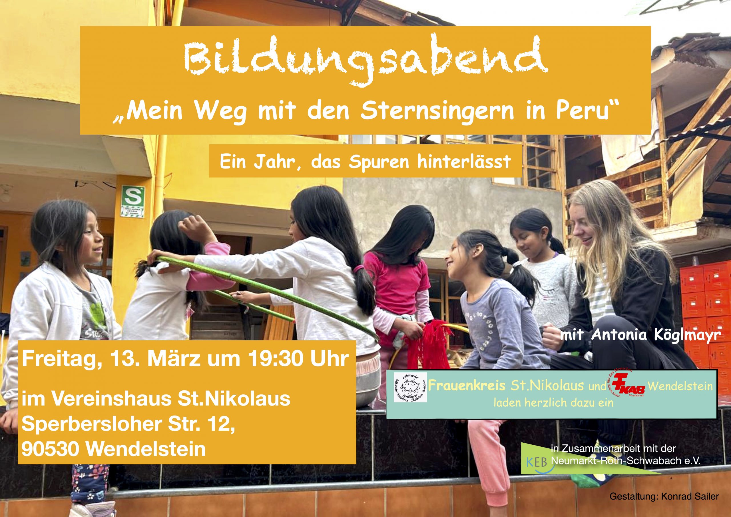Zum Bildungsabend laden der Frauenkreis St.Nikolaus und die KAB alle Weltoffenen recht herzlich ein.