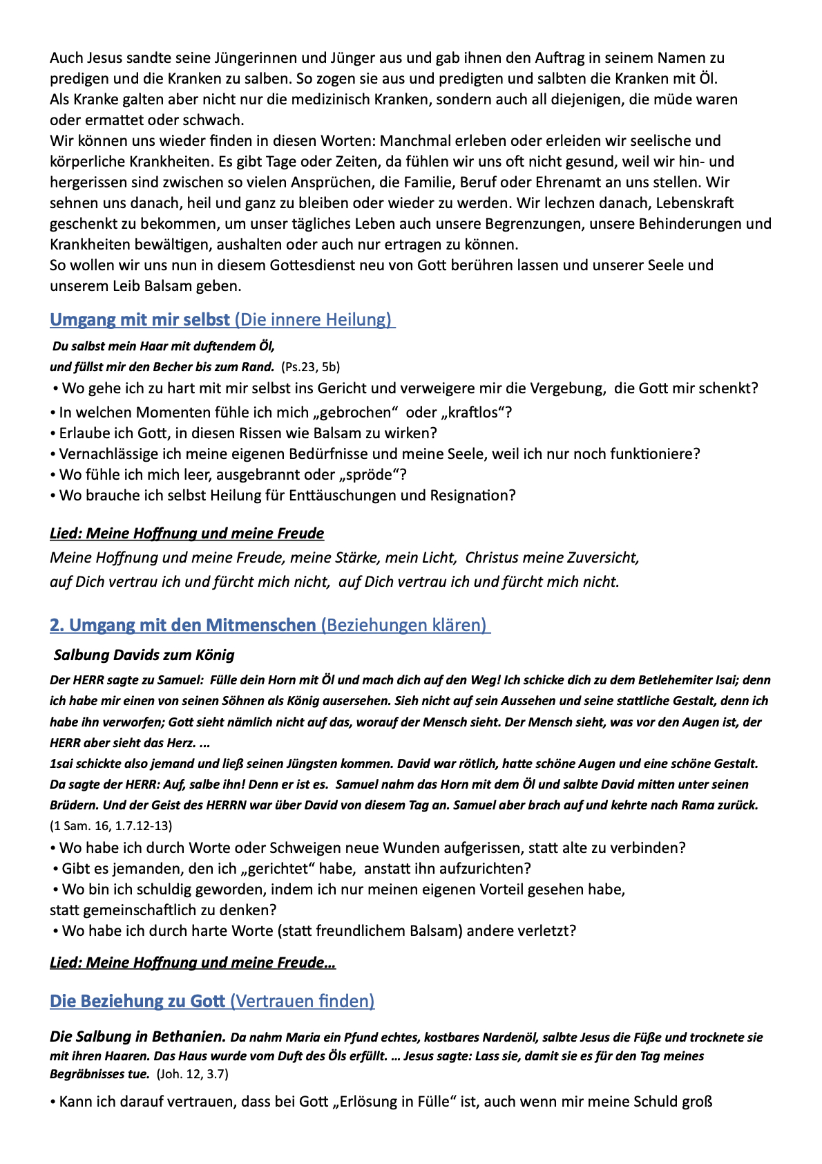 3. Hinführende Gedanken / Schrifttext