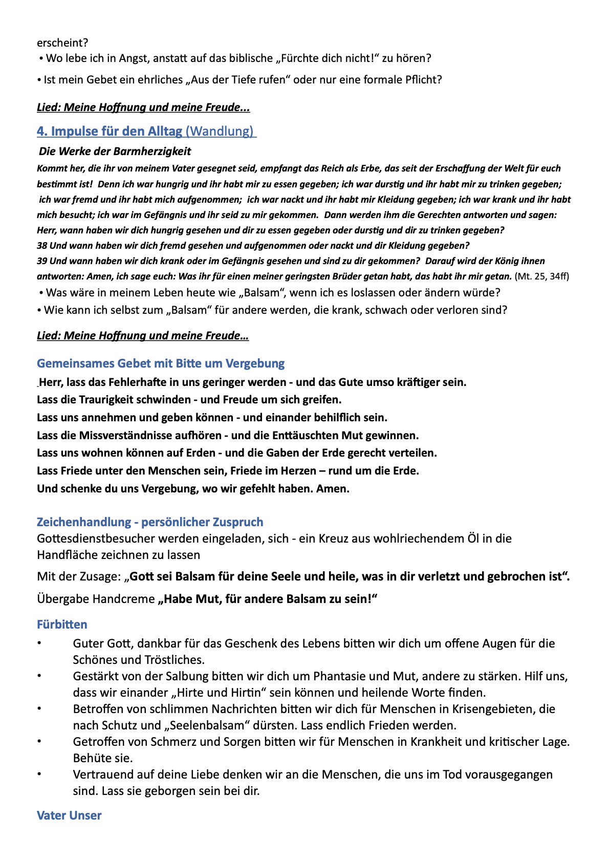 Bitten für Kranke und für Menschen, die sie pflegen und heilen, Vaterunser