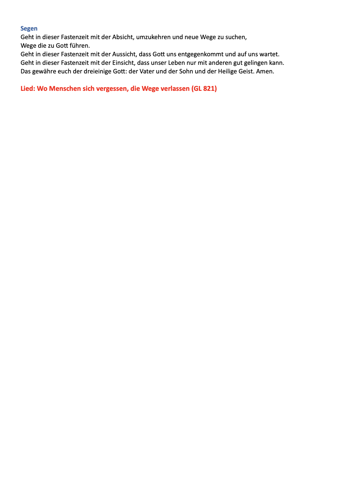 Schlusslied: Herr wir bitten, komm und segne uns